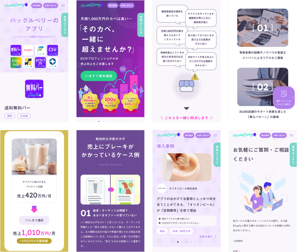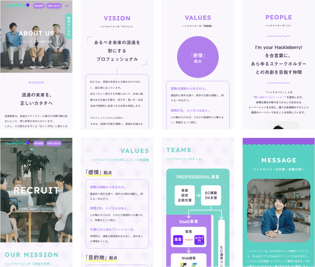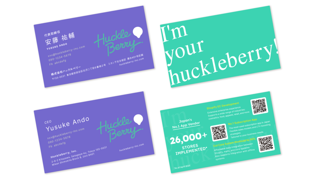 株式会社ハックルベリーのロゴデザイン、サイトデザイン等を担当させていただきました。